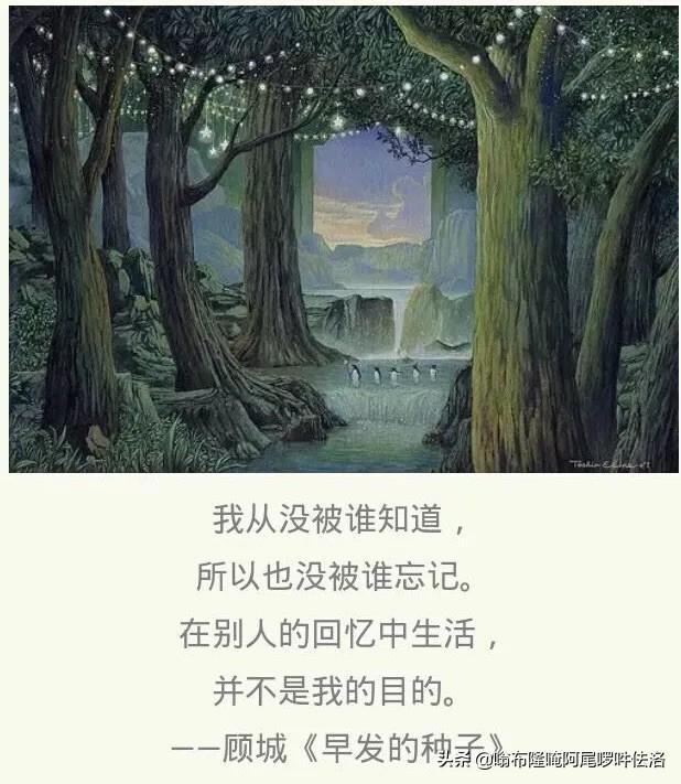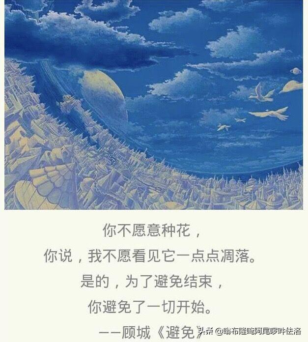 顾城的诗是朦胧诗中最美的诗,通常每首诗歌中都有爆款诗句,让人读完后久久心情不能平静,带着思考和作者一起陷入情绪之中,所以触动很深!!