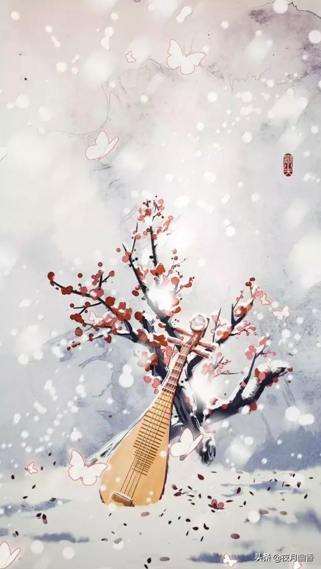 17,楼角初消一缕霞,淡黄杨柳暗栖鸦,玉人和月摘梅花。